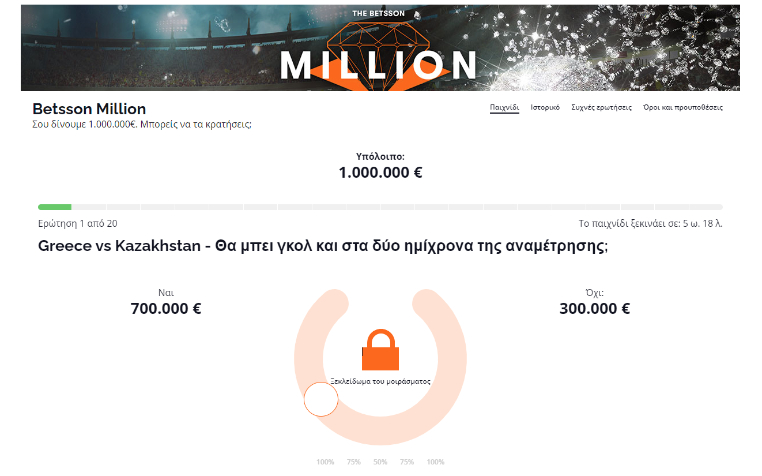 Betsson Million: To παιχνίδι του 1.000.000€ έφτασε!