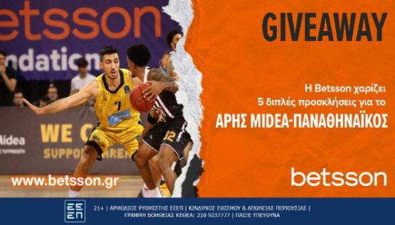 Η Betsson μοιράζει 5 διπλά εισιτήρια για την αναμέτρηση στη Θεσσαλονίκη και εσύ έχεις την ευκαιρία να είσαι ανάμεσα στους τυχερούς που θα κερδίσουν την είσοδό τους στο γήπεδο του Άρη Midea.