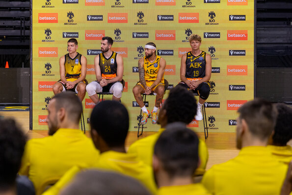 Στη Συνέντευξη Τύπου έδωσαν «το παρών» ο μεγαλομέτοχος της AEK Betsson BC, Μάκης Αγγελόπουλος, ο Μanaging Director της Betsson Greece, Θάνος Μαρίνος και ο προπονητής της ομάδας, Ντράγκαν Σάκοτα.