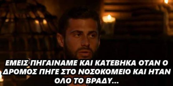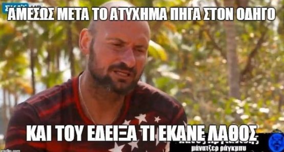 Ο μανάβης μίλησε για κάρμα και για το γεγονός ότι με τον Πάνο είχαν τσακωθεί στην αρχή του παιχνιδιού και τώρα έτυχε να ήταν αυτοί οι 2 που γλύτωσαν τελείως το ατύχημα. Ούτε τύχη είναι, ούτε κάρμα ρε μανάβη. Ο αρχηγός μας σε επέλεξε να τον ακολουθήσεις στο άλλο βανάκι για να σου δείξει το μεγαλείο του. Μην μας το παίζεις συναισθηματικός τώρα γιατί μπορεί ο Πανάρας να συγχωρεί, ο λαός του όμως ποτέ. Εντωμεταξύ είπαν πως ο μανάβης πήγε στο άλλο βανάκι με τον αρχηγό επειδή θα πήγαιναν στο νοσοκομείο και ο μανάβης είχε ένα πρόβλημα στον καρπό του. Και στο χθεσινό αγώνισμα τον είδαμε να φτύνει το χέρι του. Τι είναι η χλέπα σου ρε μανάβη για να σε τραυματίσει, βόμβα ναπάλμ; Και τότε μίλησε ο ιεροκήρυκας της στρατηγικής. Είπε πολύ σοφά πράγματα, ήταν απόλυτα ψύχραιμος, η πραότητα διέκρινε το λόγο του και πραγματικά συγκίνησε όλη την Ελλάδα καθώς έδειξε το μεγαλείο του σαν άνθρωπος. Το μιλφ ήταν σοκαρισμένο και φυσιολογικό είναι εδώ που τα λέμε, πήγε με στόχο τα 100 χιλιάρικα και θα φύγει με σουβενίρ 2 σπασμένα πλευρά. Το γρήγορον χαλούμιν απουσίαζε από το συμβούλιο καθώς ακόμα δεν μπορεί να κουνηθεί, αλλά δεν το κουνάει από τον άγιο δομήνικο και όπως μας είπε ο Πάνος, ο τρελός Κύπριος θα συνεχίσει κανονικά στο παιχνίδι. Το μιλφ δυστυχώς δεν θα μπορέσει να συνεχίσει στο παιχνίδι και έτσι θα γυρίσει πίσω στην Ελλάδα. Γρήγορη ανάρρωση ευχόμαστε σε όλους, μακάρι να είναι όλοι καλά.