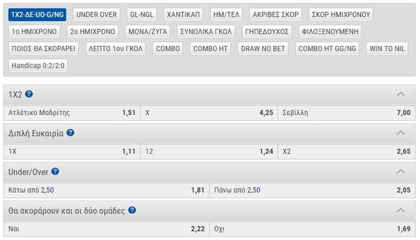 Το Ατλέτικο Μαδρίτης – Σεβίλλη παίζει στην Betshop