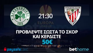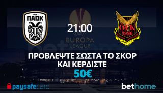 Το αγαπημένο σας στοιχηματικό site σας επιβραβεύει για την εμπιστοσύνη που του δείξατε από την πρώτη μέρα… ζωής του με ακόμη έναν σούπερ διαγωνισμό. Το Bethome.gr σε συνεργασία με το Betarades.gr και την paysafecard σας δίνει τη δυνατότητα να κερδίσετε 50€ προβλέποντας σωστά το σκορ του αγώνα ΠΑΟΚ – Σπαρτάκ Μόσχας. Βήμα 1: Κάντε κλικ εδώ για να