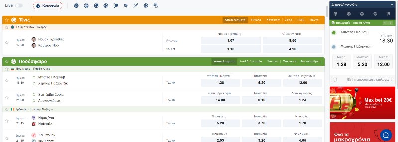 Όλα τα παραπάνω είναι διαθέσιμα με πολλές αγορές όπως: Ασιατικά Χάντικαπ (και στο Live), Κάρτες, Κόρνερ, Σκόρερ, Λεπτά, Combo Bets, Εναλλακτικά Χάντικαπ στο Μπάσκετ, Ειδικά Παικτών, Ειδικά Ομάδων.