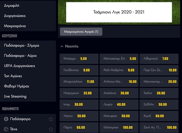 Έχει γίνει κατανοητό, ότι το ποδόσφαιρο φοράει τα καλά του για τη σεζόν 2020-2021! Ο κόσμος «διψάει» για καλή μπάλα και το στοίχημα δεν θα μπορούσε να λείπει από το πακέτο. Στο pamestoixima.gr εντοπίζετε φοβερά μακροχρόνια στοιχήματα για τους νικητές των διοργανώσεων, για τους παίκες και όχι μόνο, σε ελκυστικές αποδόσεις! Επιπλέον, είναι αυτονόητο ότι τα παιχνίδια, σε όλη τη σεζόν, θα συνοδεύονται από κορυφαίο Live Betting με πληθώρα επιλογών! Το pamestoixima.gr εξελίσσεται και οι προοπτικές του… δεν γνωρίζουν από όρια!