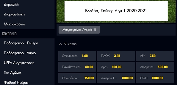 **Ισχύει μόνο για την αγορά «Τελικό Αποτέλεσμα» έως την έναρξη των αγώνων.