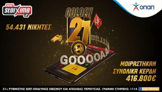 Το προηγούμενο διάστημα ζήσαμε σπουδαίους ποδοσφαιρικούς αγώνες και το Golden 21 του Pamestoixima.gr φρόντισε ούτως ώστε η απόλαυση να είναι μεγαλύτερη! Το δωρεάν* παιχνίδι του Pamestoixima.gr μας κράτησε συντροφιά για 10 εβδομάδες (14/02 έως 24/04) και ξεχώρισε για το γεγονός ότι υπήρχε ελεύθερη επιλογή αγώνων και πρωταθλημάτων. Στο Golden 21 του Pamestoixima.gr ο παίκτης έπρεπε να επιλέξει επτά αγώνες με στόχο τα σημειωθούν ακριβώς 21 γκολ συνολικά από τα μεγάλα ευρωπαϊκά πρωταθλήματα. Οι νικητές μοιράζονταν το εγγυημένο εβδομαδιαίο έπαθλο των 21.000 ευρώ. Για μία εβδομάδα (21/3-28/3) το Pamestoixima.gr διπλασίασε μάλιστα το εβδομαδιαίο έπαθλο σε 42.000 ευρώ.