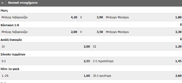 Το Λεβερκούζεν – Μπάγερν Μονάχου παίζει στην Interwetten