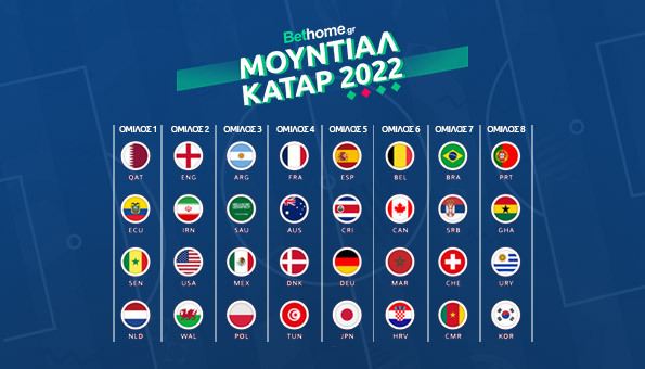8 όμιλοι και 32 ομάδες στο σύνολο παίρνουν μέρος στο Μουντιάλ. Δείτε όλους τους ομίλους πιο κάτω: