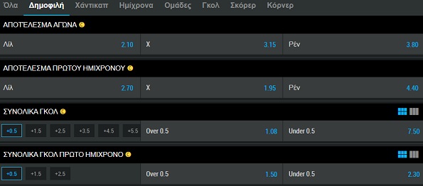 Η αναμέτρηση προσφέρεται από τη Mybet με πλήθος αγορών.