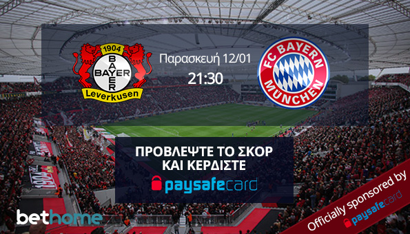 Το αγαπημένο σας στοιχηματικό site σας επιβραβεύει για την εμπιστοσύνη που του δείξατε από την πρώτη μέρα… ζωής του με ακόμη έναν σούπερ διαγωνισμό. Το Bethome σε συνεργασία με την paysafecard σας δίνει τη δυνατότητα να κερδίσετε 100€ προβλέποντας σωστά το σκορ του αγώνα Λεβερκούζεν – Μπάγερν.