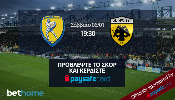 Το αγαπημένο σας στοιχηματικό site σας επιβραβεύει για την εμπιστοσύνη που του δείξατε από την πρώτη μέρα… ζωής του με ακόμη έναν σούπερ διαγωνισμό. Το Bethome σε συνεργασία με την paysafecard σας δίνει τη δυνατότητα να κερδίσετε 100€ προβλέποντας σωστά το σκορ του αγώνα Παναιτωλικός – ΑΕΚ.
