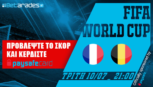 Το αγαπημένο σας στοιχηματικό site σας επιβραβεύει για την εμπιστοσύνη που του δείξατε από την πρώτη μέρα… ζωής του με ακόμη έναν σούπερ διαγωνισμό. Το Betarades.gr σε συνεργασία με την paysafecard σας δίνει τη δυνατότητα να κερδίσετε 50€ προβλέποντας σωστά το σκορ του αγώνα Γαλλία – Βέλγιο.