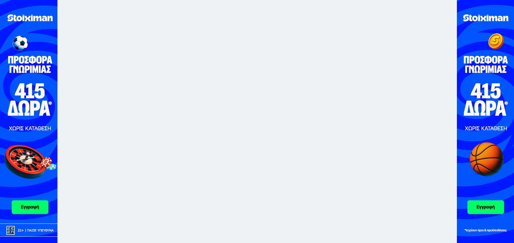 ***Η προσφορά 0% Γκανιότα ισχύει για την αγορά Nικητής Aγώνα μέχρι την έναρξη του αγώνα, σε επιλεγμένα παιχνίδια που έχουν δίπλα τους το εικονίδιο 0%.
