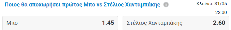 Η τρίτη μας επιλογή προέρχεται από το Head-to-Head ανάμεσα σε Bo και Χανταμπάκη για το ποιος θα αποχωρήσει πρώτος από το νησί. Ο Bo μπορεί να είναι ένας αγαθός γίγαντας που δεν ενοχλεί κανέναν, ωστόσο η δυσκολία που αντιμετωπίζει στα αθλήματα σε συνδυασμό με τη μοναχικότητά του, αργά ή γρήγορα θα τον διώξουν από το reality. Ο «Χάντα» από την πλευρά του είναι δυναμικότατος στα αθλήματα, ενώ παράλληλα έχει δημιουργήσει και το δική του «κλίκα» όντας ο αρχηγός. Ο Bo δίνεται σε απόδοση 1.45 στον Stoiximan να αποχωρήσει πρώτος και λογικά μας στέλνει «ταμείο».