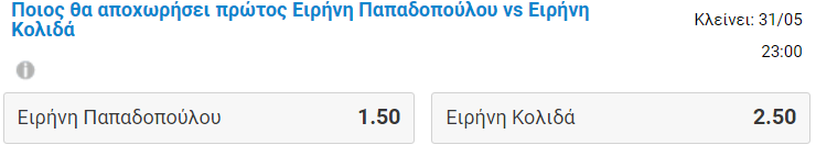 Το να αποχωρήσει πρώτη η Ειρήνη Παπαδοπούλου παίζει στον Stoiximan